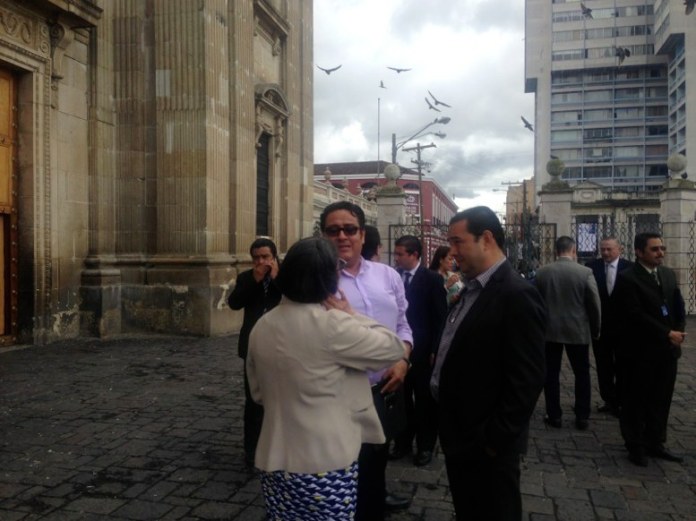 Sammy Morales, hermano del presidente electo Jimmy Morales, llegó hoy al Palacio Nacional con una comitiva de FCN-Nación, como observador de los avances del proceso de cambio de mando en el Organismo Ejecutivo. Posteriormente, se trasladó a la Catedral Metropolitana, aunque no brindó declaraciones a la prensa.
