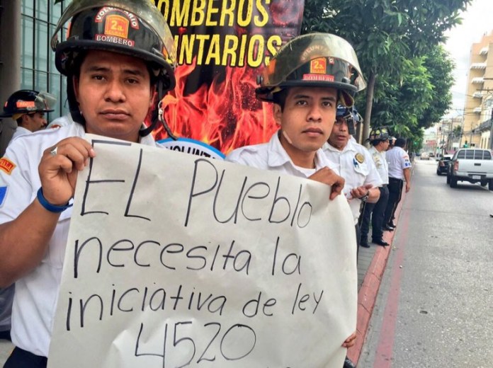 Esta mañana, un grupo de bomberos se presentó al Congreso para hacer presión para la aprobación de reformas a la Ley Orgánica del Cuerpo Voluntario, para elevar el presupuesto asignado.