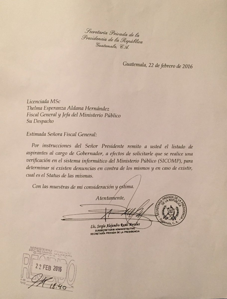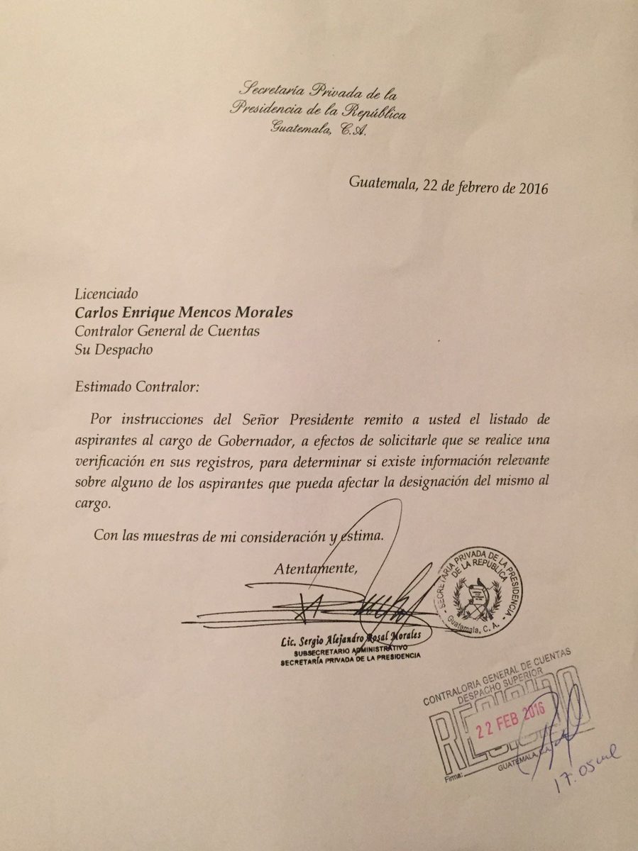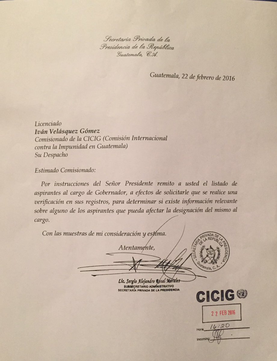 En el caso de la Cicig, el Ejecutivo pidió revisar sus registros para determinar si existe información relevante sobre alguno de los aspirantes que pueda afectar su designación al cargo; la misma petición se realizó a la Contraloría General de Cuentas.