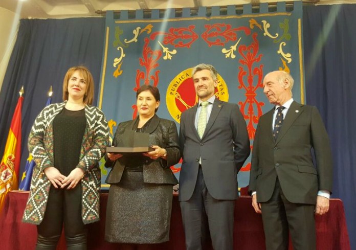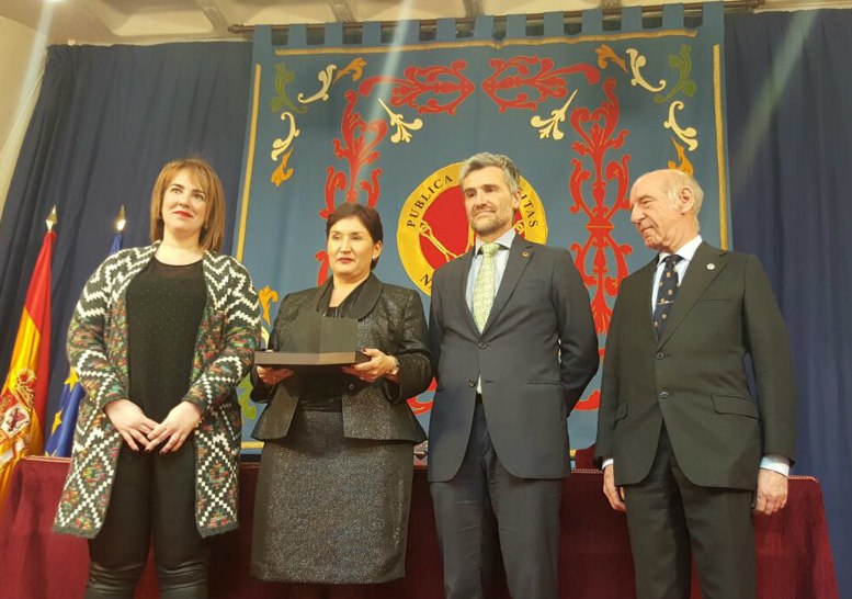La entrega del premio, dotado con 36 mil euros, puso fin a dos jornadas para Aldana en Pamplona, donde ayer mantuvo un encuentro con estudiantes de la Facultad de Ciencias Jurídicas de la UPNA e impartió una conferencia sobre la violencia contra la mujer y los pueblos indígenas.