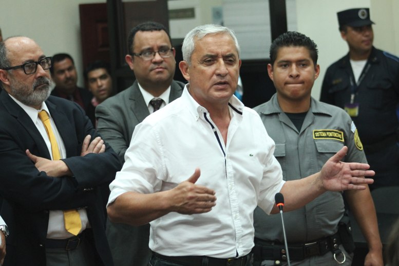 Uno de los primeros procesados en llegar a la audiencia fue el expresidente, quien acudió esposado y custodiado por guardias del Sistema Penitenciario. Pérez Molina está en prisión desde el 3 de septiembre de 2015, luego de haber renunciado al cargo.