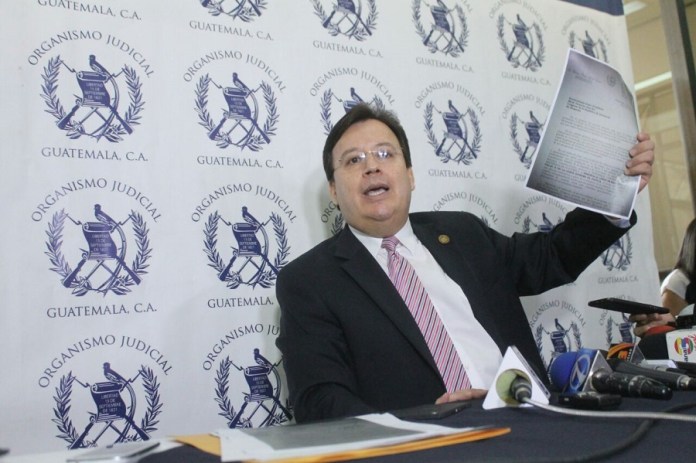 Diputados de Encuentro por Guatemala ratifican su denuncia contra el magistrado Aguilar, quien renunció hoy. pic.twitter.com/KiRtuQIZsQ