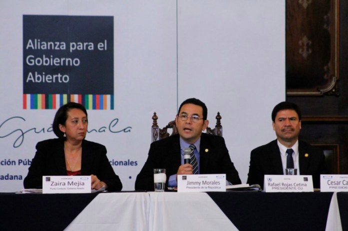 El presidente Jimmy Morales participó en la presentación del Tercer Plan de Acción de Gobierno Abierto. En el evento, diferentes entidades se comprometieron a la implementación de políticas de transparencia.
