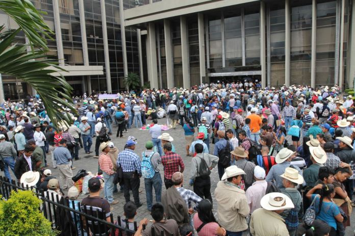 Luego de protestar frente a la SAT, los caficultores partieron rumbo al Ministerio de Finanzas (Minfin) donde hicieron un plantón para exigir que se escuchen sus demandas.