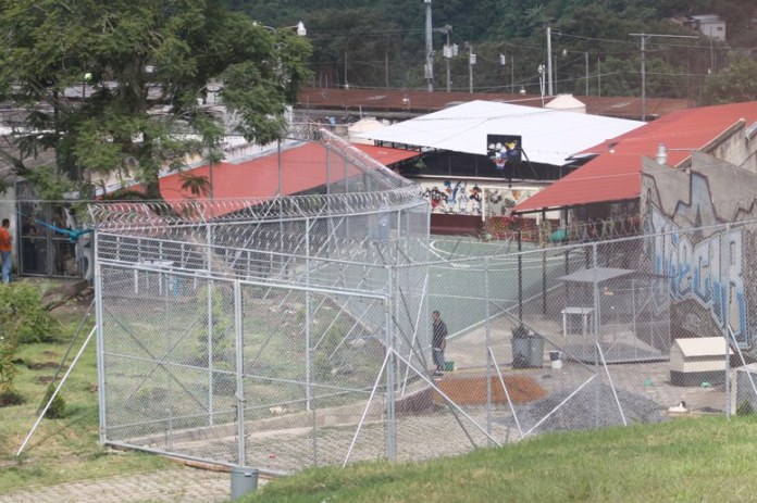Desde la malla de la cárcel, miembros del Barrio 18 explicaron que el polideportivo fue instalado con apoyo de la Iglesia, aunque prefirieron no indicar cuál, ya que fue realizado con la intención de buscar medidas de ocupación.
