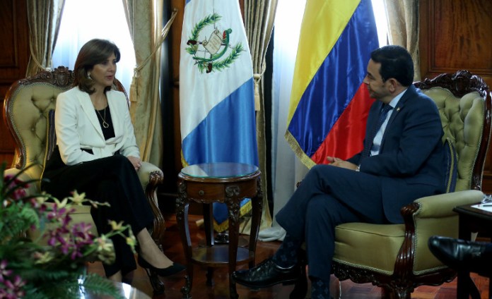 El presidente Jimmy Morales recibió en su despacho a la canciller colombiana María Ángela Holguín.