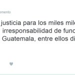 Letty Morales: Y qué tal si jugamos al tin marin, yo no fui, fuiste tú ¿y entonces quien? El pueblo de Guatemala que solo es espectador, el pueblo que todavía lo compran con espejitos, el pueblo que solo espera que al fin le dé la gana a Jimmy de hacer algo por su tierra. Ineptitud, indiferencia social, irresponsabilidad de los padres o engendradores de estas criaturas.