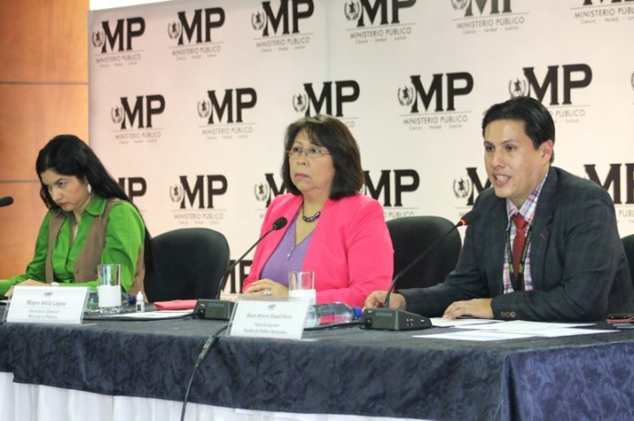 En rueda de prensa, la secretaria general del MP, Mayra Véliz y el Fiscal de Delitos Electorales dieron detalles sobre dos solicitudes de antejuicio presentadas contra los diputados Mario Velásquez Pérez, de Compromiso, Renovación y Orden (Creo), y Claude Harmelin de León, de FCN.