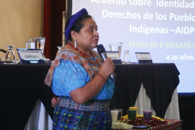“El Congreso está muy rezagado en la discusión, están muy desinformados”, indicó Menchú. La Nobel de la Paz alentó a los pueblos indígenas a que sigan ejerciendo sus derechos donde quiera que estén y aseguró que las autoridades indígenas tienen un rol muy importante en la sociedad.