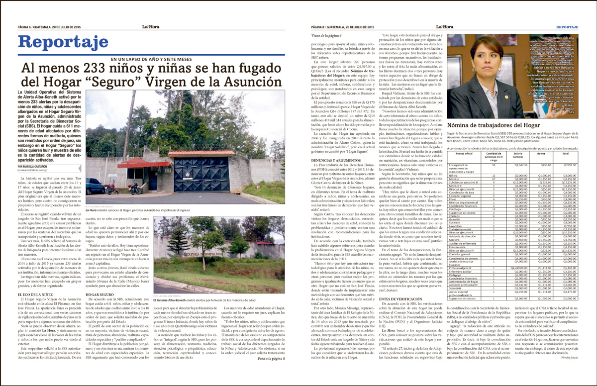 La crisis del Hogar Seguro empezó a revelarse en 2013 y se agudizó en 2015. Las 233 fugas o desapariciones reportadas por este vespertino en julio de 2015, no fueron motivo para que las autoridades actuaran oportunamente. El problema continuó y entre septiembre y octubre de 2016, se activaron 40 alertas Alba-Keneth, de niñas que tenían entre 12 a 17 años.