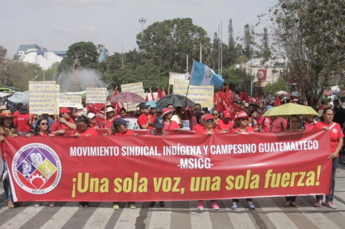 El Movimiento Sindical Indígena y Campesino Guatemalteco realizó un plantón esta mañana frente a la Corte Suprema de Justicia (CSJ) para expresar su desaprobación al sistema de justicia laboral que rige en el país.