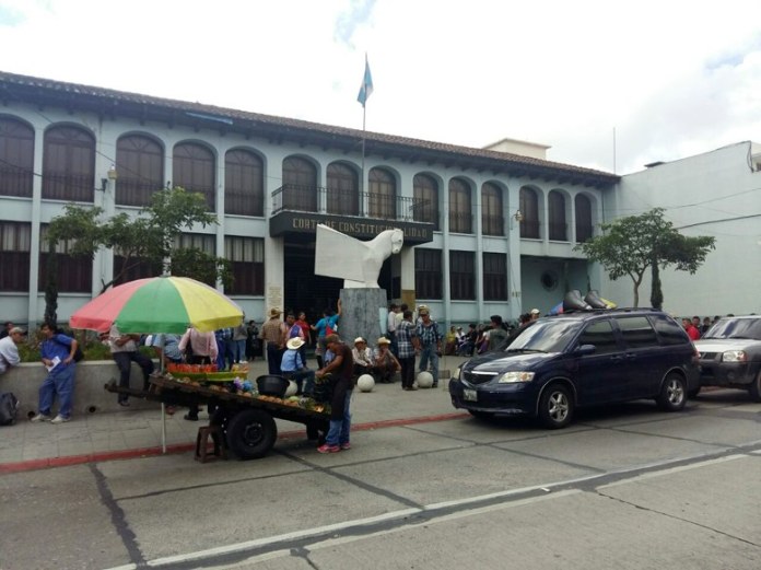 Miembros de la Resistencia Pacífica de La Puya realizaron hoy un plantón frente a la Corte de Constitucionalidad (CC) para manifestar su rechazo a las industrias extractivas, así como para condenar el lanzamiento de las fuerzas de seguridad de gas lacrimógeno la semana pasada contra una protesta en Casillas, Santa Rosa.