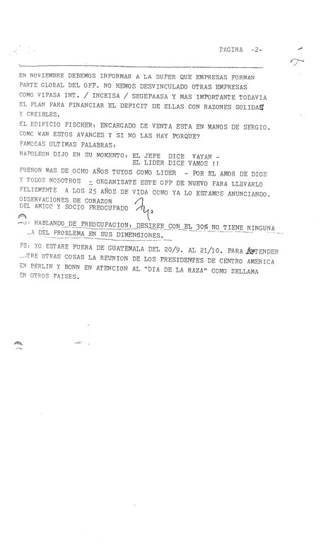 “Mi corazón está en Guate y con Guate, pero no en Pavón”, confesó Ingo Haberland en una carta en septiembre de 2002. El mensaje, redactado a máquina por uno de los fundadores de Banco del Café, iba dirigido a Manuel Eduardo González Castillo, el hombre al que consideraba su hijo y quien recién había dejado la presidencia del banco. Este socio estaba preocupado.
