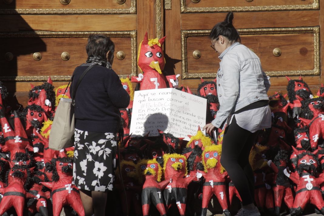 Con una instalación artística colocada en la puerta del Congreso, conformada de “diablitos” en referencia a la tradición de la quema del diablo, integrantes del colectivo Justicia Ya y Proyecto 44 rechazaron la elección de la Junta Directiva del Legislativo por el grupo que conforma el Pacto de Corruptos.