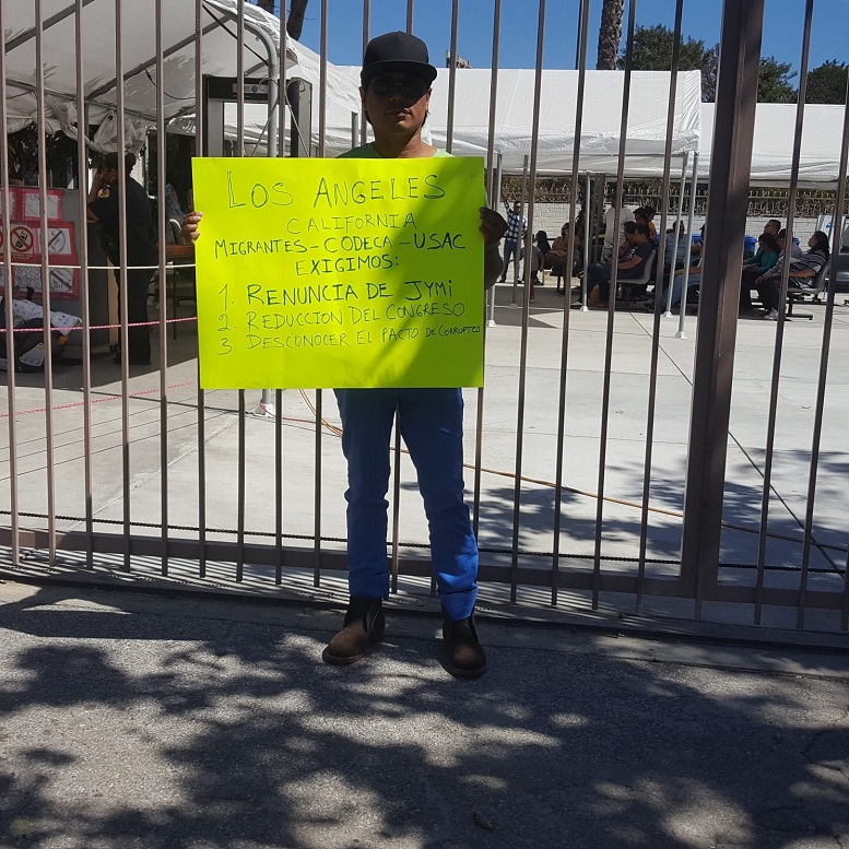Mientras que desde Los Ángeles, California, connacionales se dieron cita nuevamente también frente a las instalaciones del Consulado de esa ciudad, para exigir la renuncia del presidente Jimmy Morales, reducción del Congreso de la República y rechazar al Pacto de Corruptos.