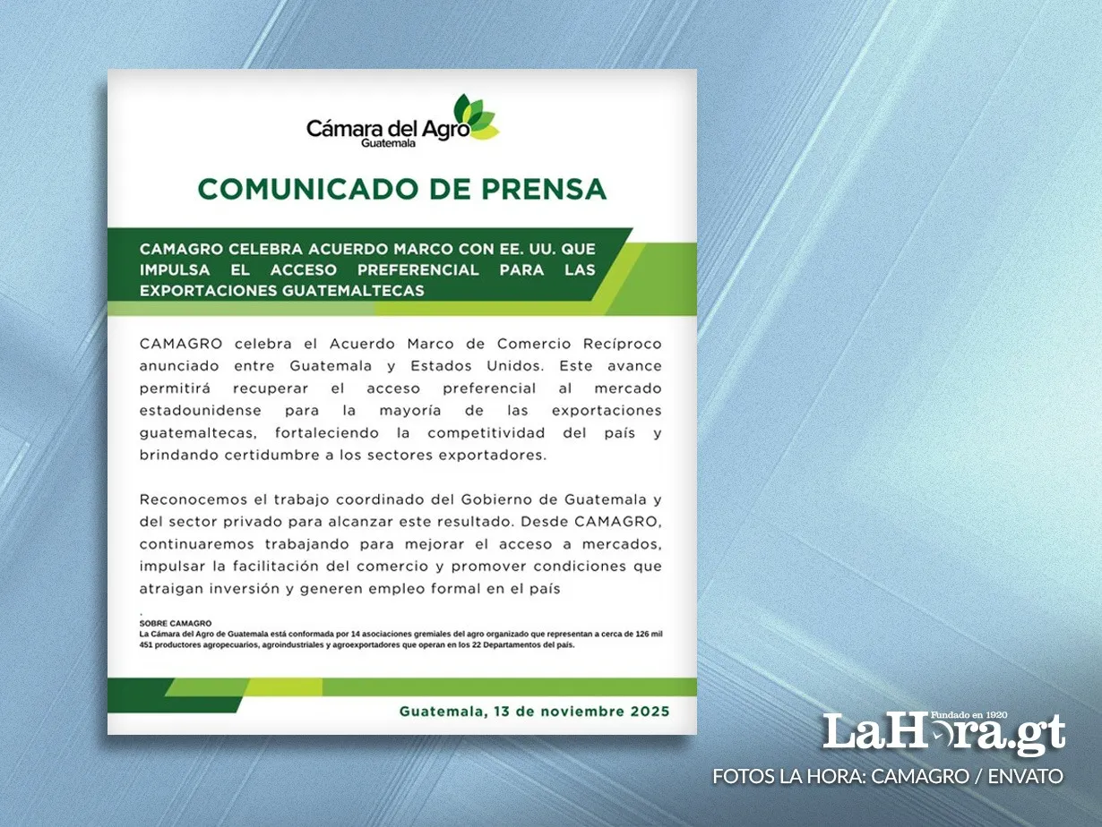 La Cámara del Agro de Guatemala (Camagro) celebró el Acuerdo Marco de Comercio Recíproco anunciado entre Guatemala y Estados Unidos.