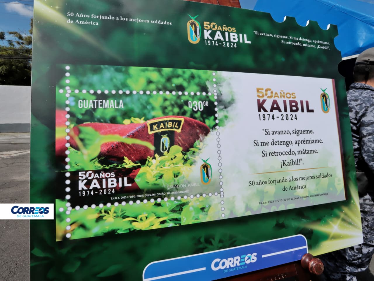 Según Correos de Guatemala, también se añadió la frase conmemorativa “50 años forjando a los mejores soldados de América”, que refuerza el carácter homenaje de esta edición.