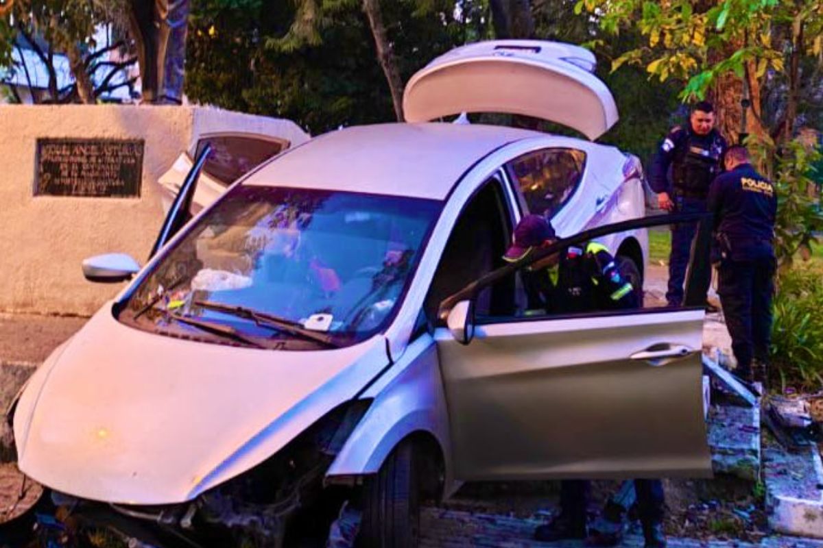 Un conductor de automóvil impactó su vehículo contra el monumento a Miguel Ángel Asturias, ubicado en Avenida Reforma y 14 calle, zona 10 de Ciudad de Guatemala, según informó Amílcar Montejo, vocero de la Policía Municipal de Tránsito.