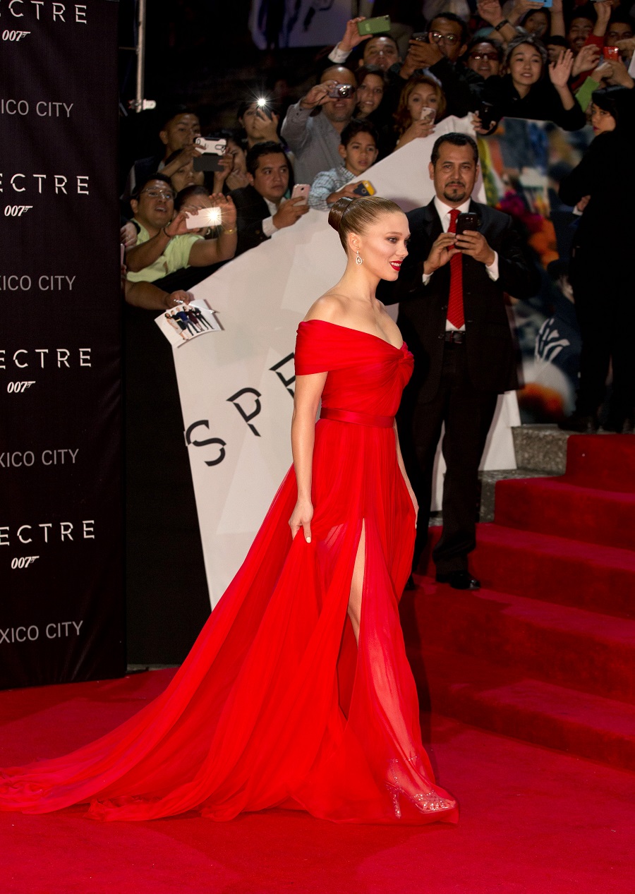 «Desafortunadamente no me tocó filmar escenas aquí, lo cual me entristece. Me tocó actuar en escenarios montañosos y en el desierto, pero puedo decir que me encanta la cultura mexicana y que es increíble estar aquí esta noche», dijo Seydoux, que también vistió un vestido largo rojo y sin tirantes.