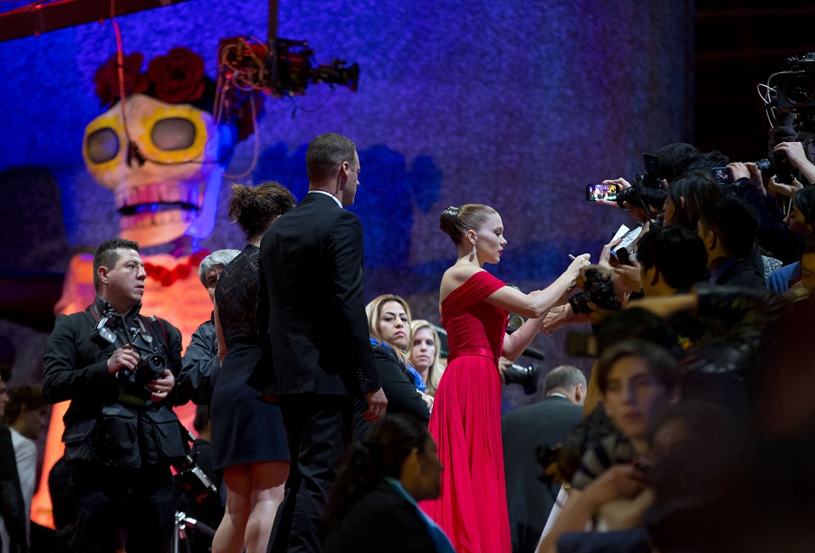 Aunque en esta ocasión no hubo helicópteros volando o edificios colapsando, las enormes calaveras de papel maché y las Catrinas mexicanas — la famosa figura creada por el grabador y caricaturista José Guadalupe Posada y bautizada por el muralista Diego Rivera — se convirtieron en una estrella más en la alfombra roja del Auditorio Nacional por la que desfiló el elenco del filme de Sam Mendes.