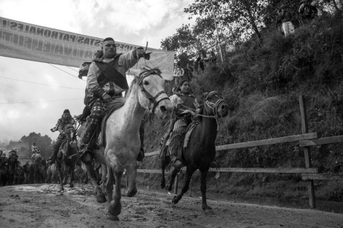 El baile termina casi al amanecer. El jinete ha estado tomando y bailando con apenas algunos descansos, gritando su tristeza o llorando su alegría, nadie puede saberlo más que él. Sube a su casa para tomar un baño, entonces baja rejuvenecido con una cerveza en la mano y montado en uno de los caballos que trajeron de Chiantla el día anterior. Las mal denominadas “carreras de caballos” están por comenzar. Es muy difícil para el turista inocente sacarse de la cabeza que el Juego de Gallos no es como la vuelta ciclística… no se trata de una competencia para ver quién llega primero. El Juego de Gallos no tiene ganador.