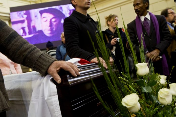 Por la tarde, la gente empezó a llegar poco a poco para despedirse del Nobel chileno.