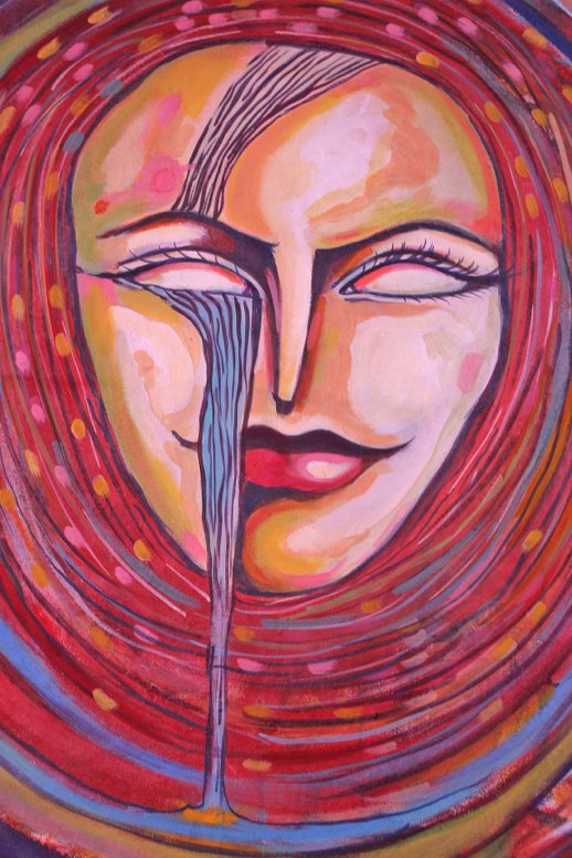 Disfruto estar solo, sin nadie que me mire, quizás con un poco de no ego, con ánimos que nacen de mí para impulsarme a pintar. Empiezo haciendo manchas que terminan teniendo formas. Casi siempre trabajo todo de una y espero si acaso al siguiente día, para ver si necesita retoques, que le arregle la mirada o agregue un par de tonos más.