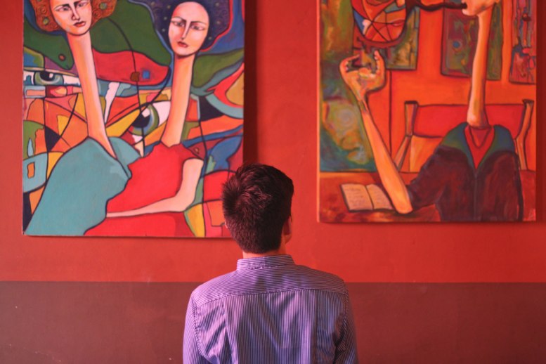 Aquí hay obra de una época que va de 2014 a hoy… y si, considero que mi trabajo ha cambiado con el tiempo. Como te contaba, siempre he sido rebelde y me he ido por lo que me gusta, así que siempre pinto lo que me nace y me inspira. A veces plasmé abstracciones de textiles, pero en otras ocasiones, formas geométricas y conceptuales coloridas. Sin embargo, mantengo un estilo, una esencia y, por supuesto, siempre tengo musas.