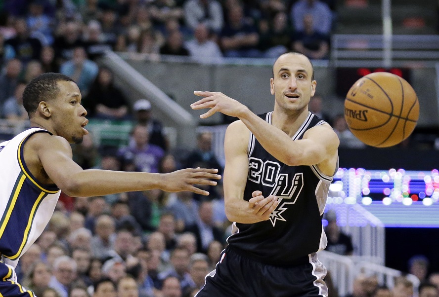 En 923 partidos con los Spurs, Ginóbili ha promediado 14 puntos. Ganó títulos de la liga con San Antonio en 2003, 2005, 2007 y 2014.