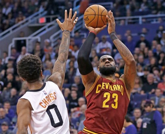 LeBron James anotó 12 de sus 28 puntos en el último cuarto y los Cavaliers de Cleveland defendieron la ventaja en la parte final del encuentro para derrotar el domingo 120-116 a los Suns de Phoenix.