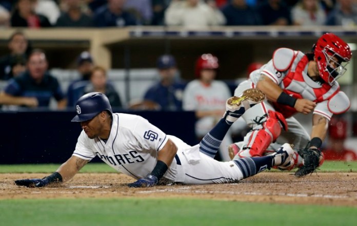 Ningún bateador de Filadelfia robó una base hasta que Maikel Franco fue alcanzado por un lanzamiento para abrir el quinto, antes del primer jonrón de Jorge Alfaro en las mayores para reducir la ventaja de los Padres a 4-2.