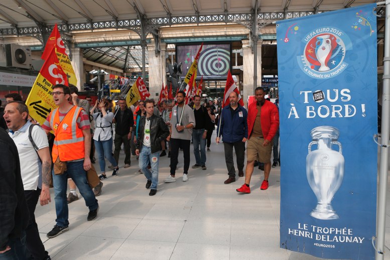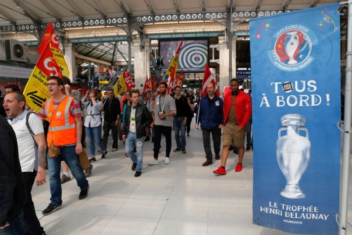 También hubo interrupciones para los trenes suburbanos de París, que el lunes llevaban a los aficionados al partido entre Irlanda y Suecia, en el Stade de France.