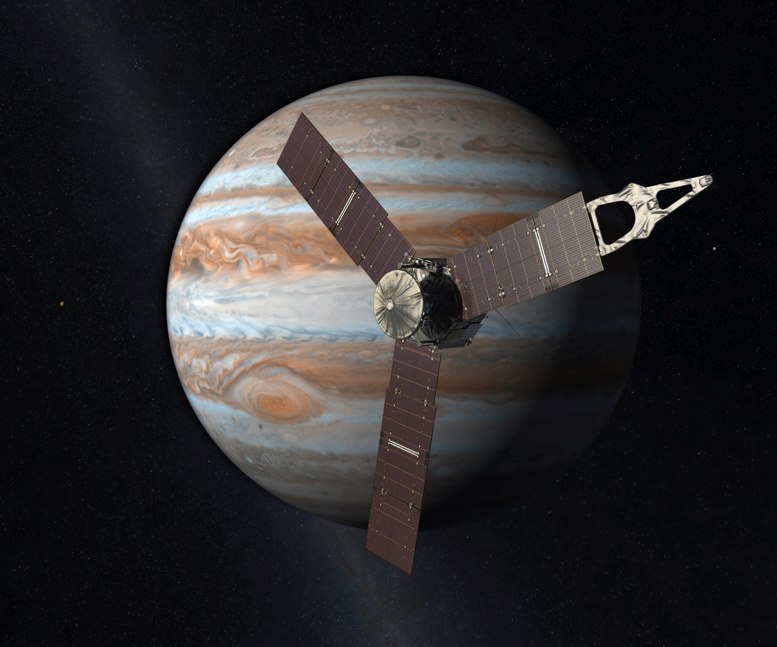 La nave espacial impulsada con energía solar realizó su primer vuelo sobre Júpiter a finales de agosto, acercándose a 4.020 kilómetros (20 millas) de las densas nubes del planeta y enviando sorprendentes imágenes de las turbulentas tormentas que se presentan en el polo norte.